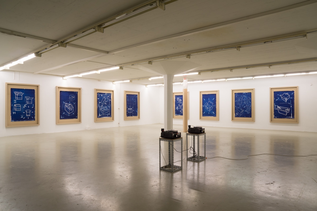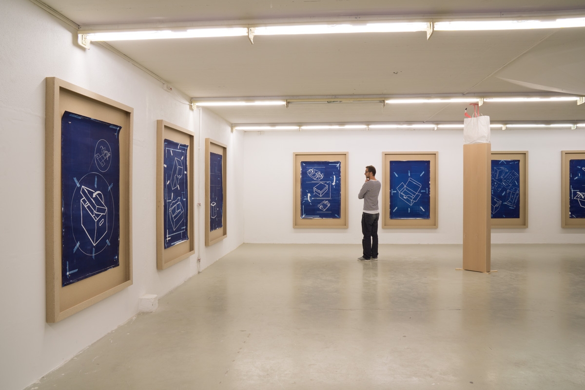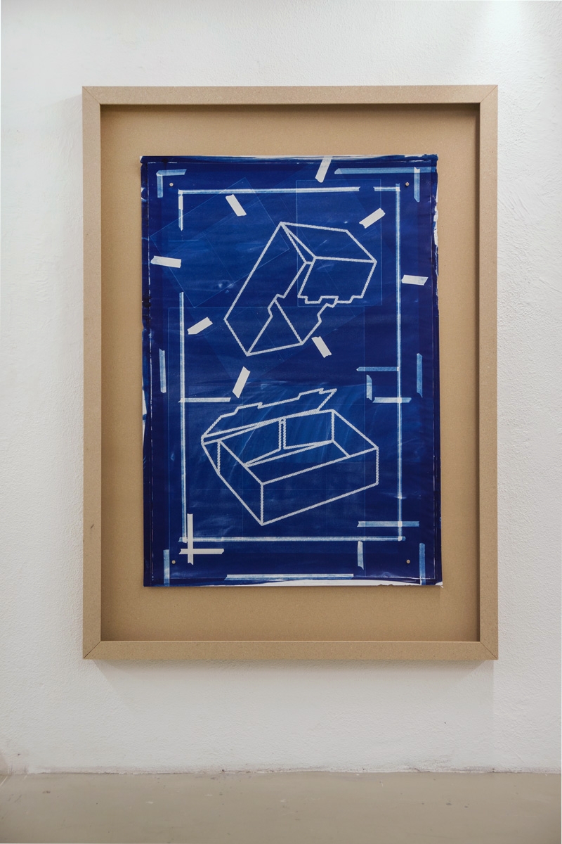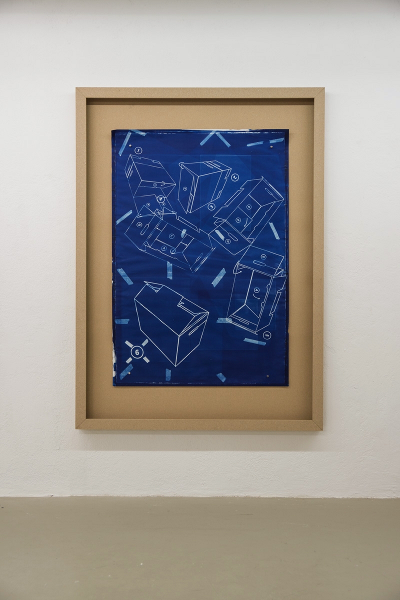Series of large-scale cyanotypes with custom chipboard box frames. All prints, 155x105cm approx. 200x145cm framed. 2014