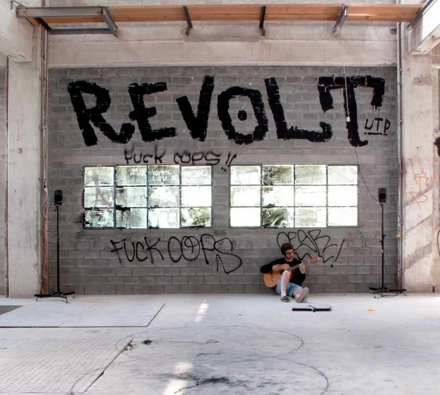 The men with a guitar were all given artists’ proposals, exhibition project outlines, press releases and other written material about the exhibition where the piece is staged/displayed. They are free to let their mind wander, bring their own associations and make ironic comments on what they see, switching from the written to the “oral”, impersonating the lone inner voice of the visitor while making sense of what they are experiencing and digesting the blurbs they have been fed.