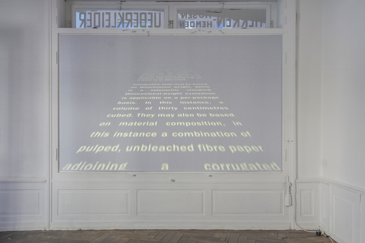 Commissioned text by Chris Fite Wassilak as video projection with a very obvious visual citation. 9'35"