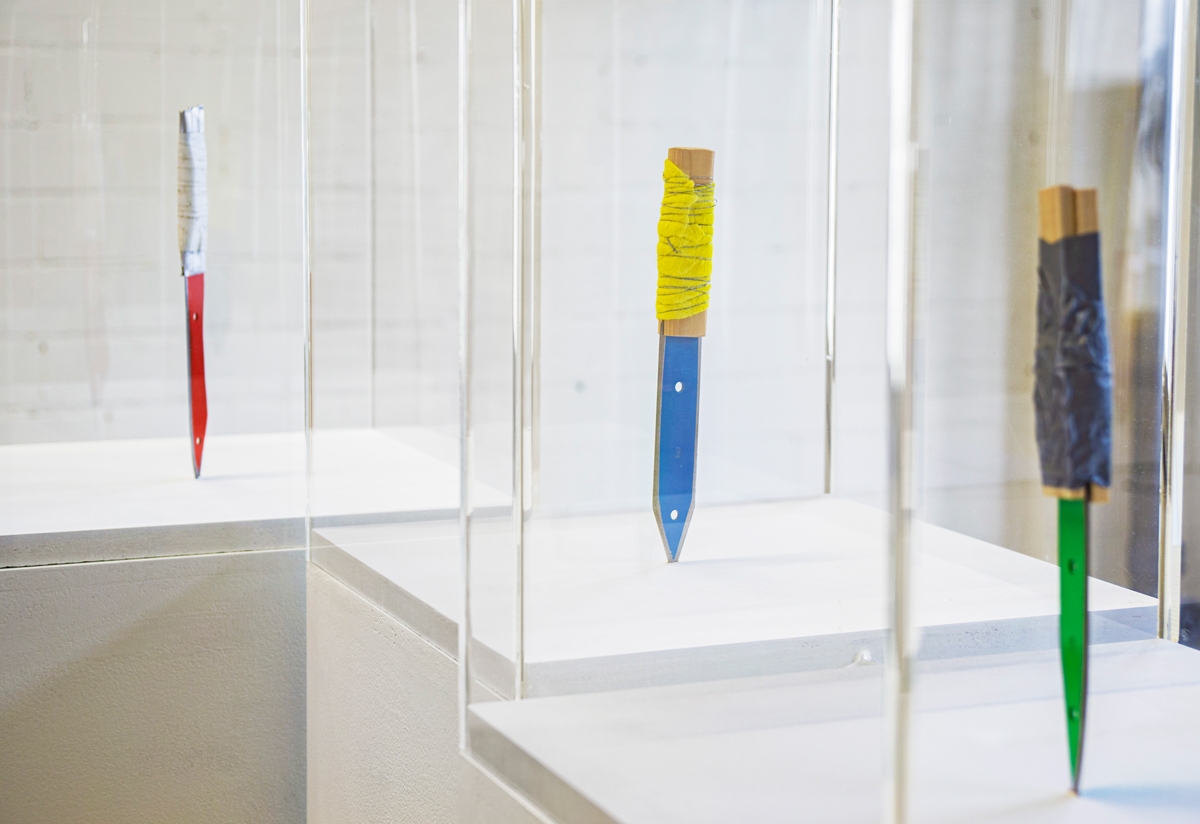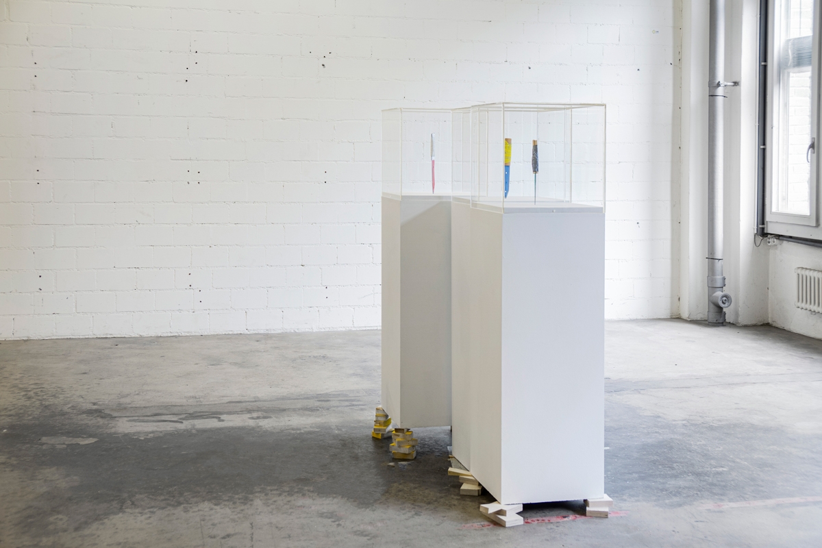 C,E, and G keys of a Glockenspiel, turned into shanks, and displayed in museum plinths, levelled so that they may harmonise as a chord – if not sonically, then as intent. Dimensions variable. 2021.