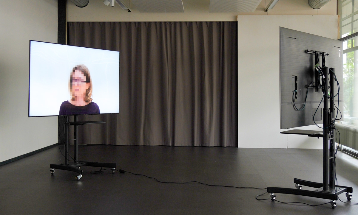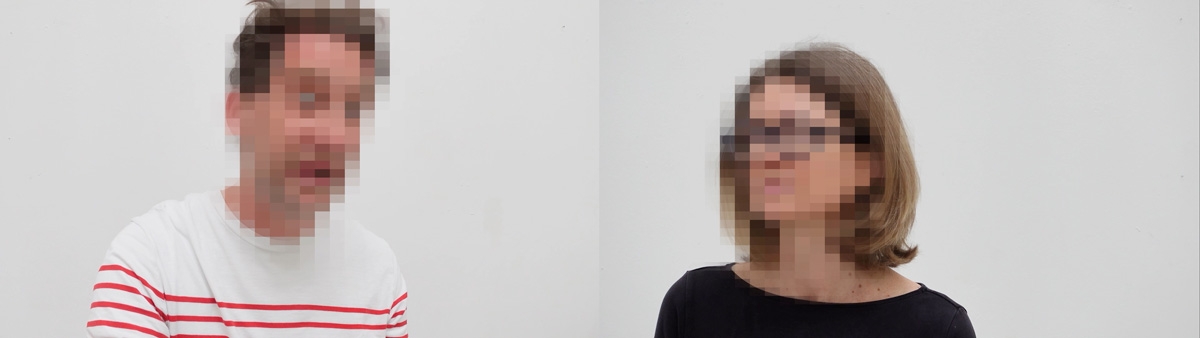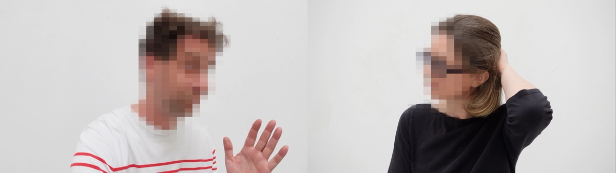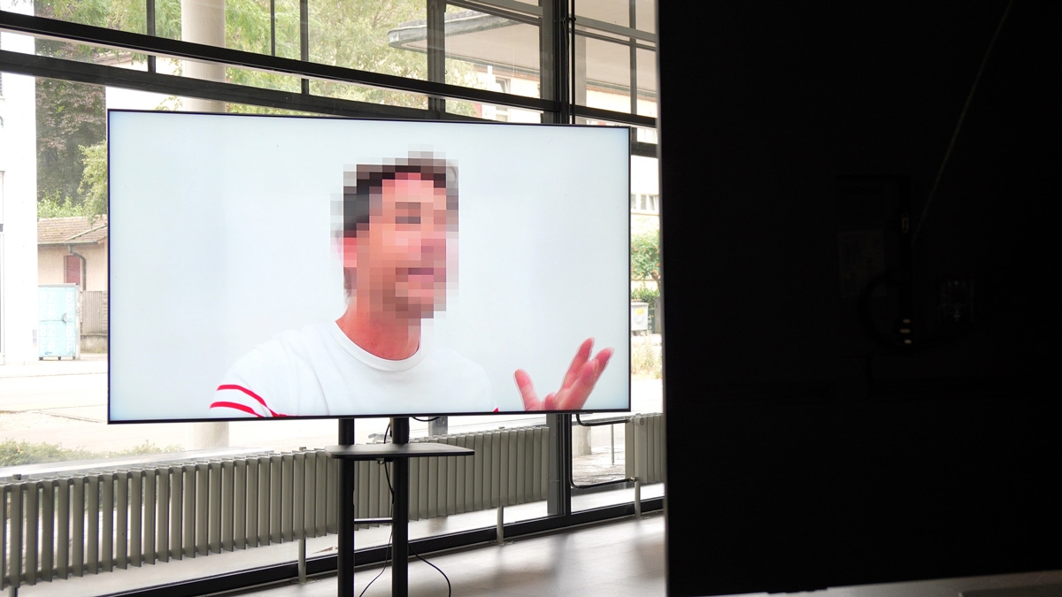 One often hears that “everything is political” in conclusion to debates. Divide attends to a reverse logic: the work’s starting point is a dialogue on the impossibilities of direct political action lifted from Jean-Luc Godard’s La Chinoise. This dialogue was flattened and neutered out of all acting competences thanks to A.I. voice software, and then re-enacted in front of a camera by a man and a woman in Karaoke-like sessions. The best of these takes are jump-cut together, with faces anonymised and the dialogue keywords bleeped out as per broadcast standards.