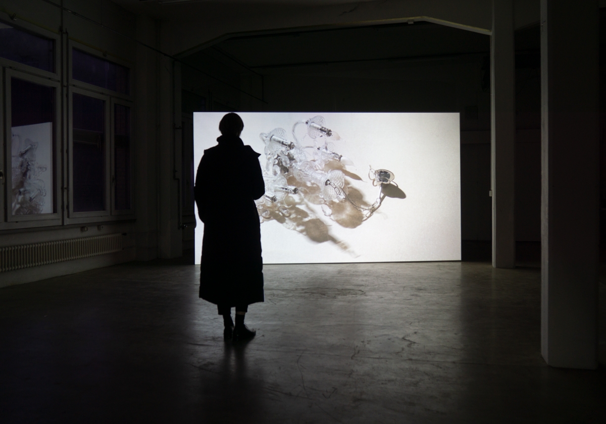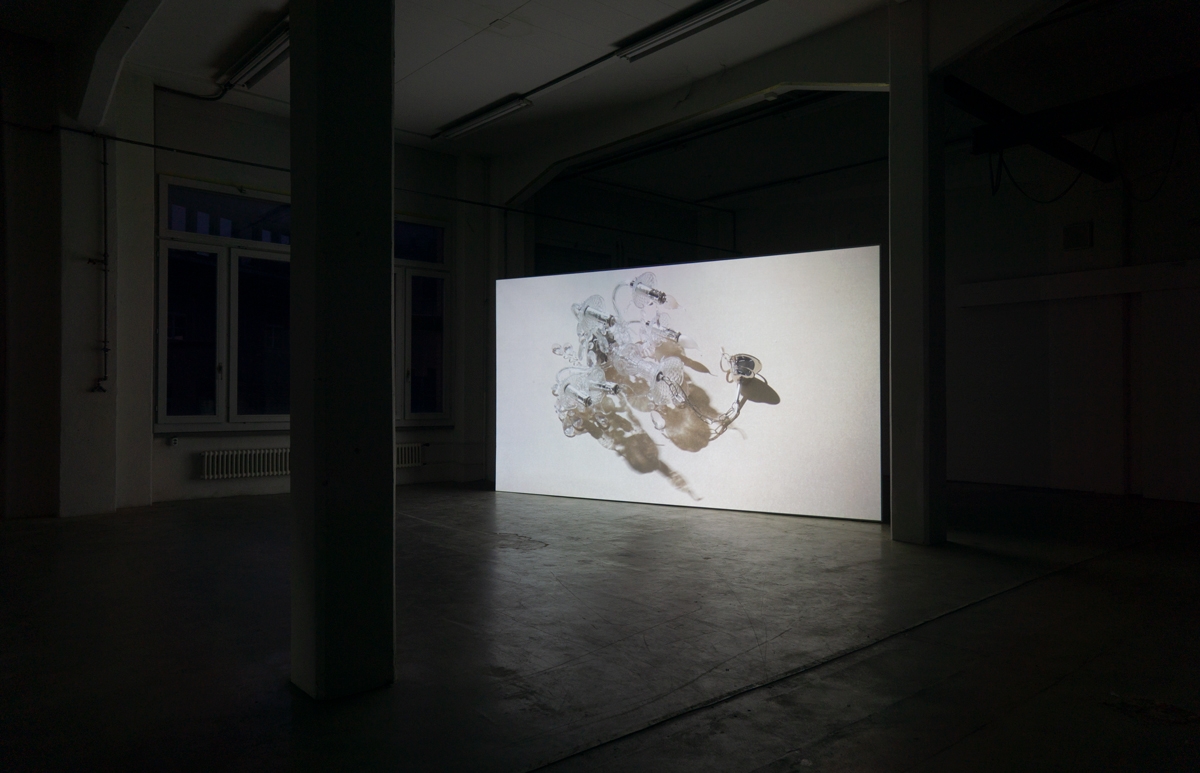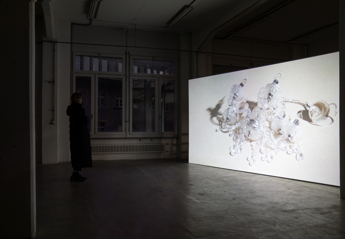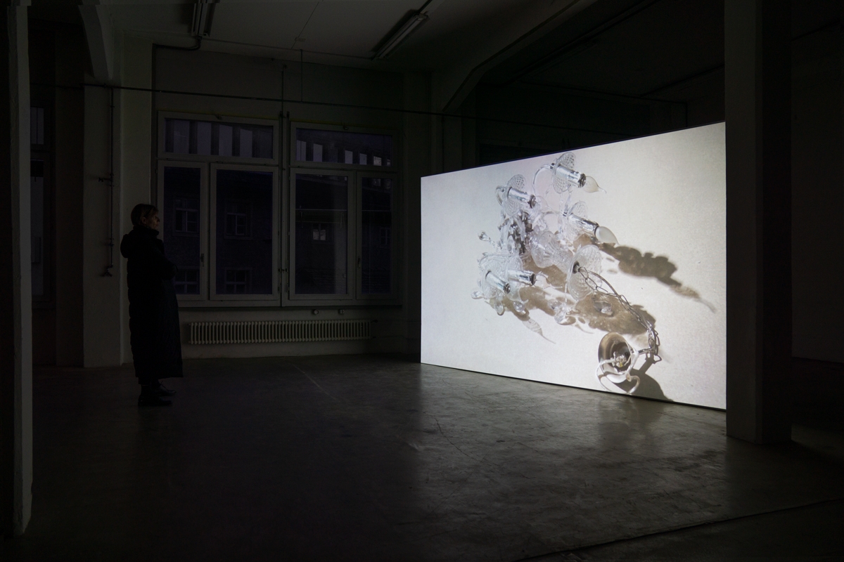 HD Video of a fallen chandelier and revolving shadows, projected. Endless loop. 2021.