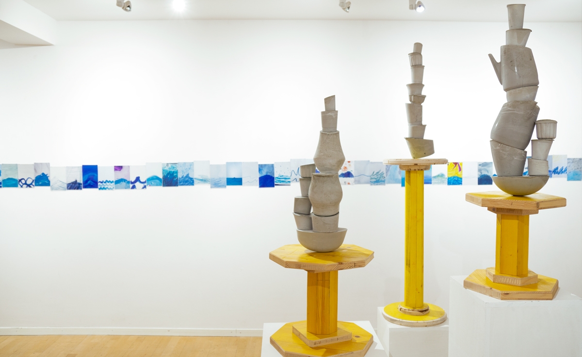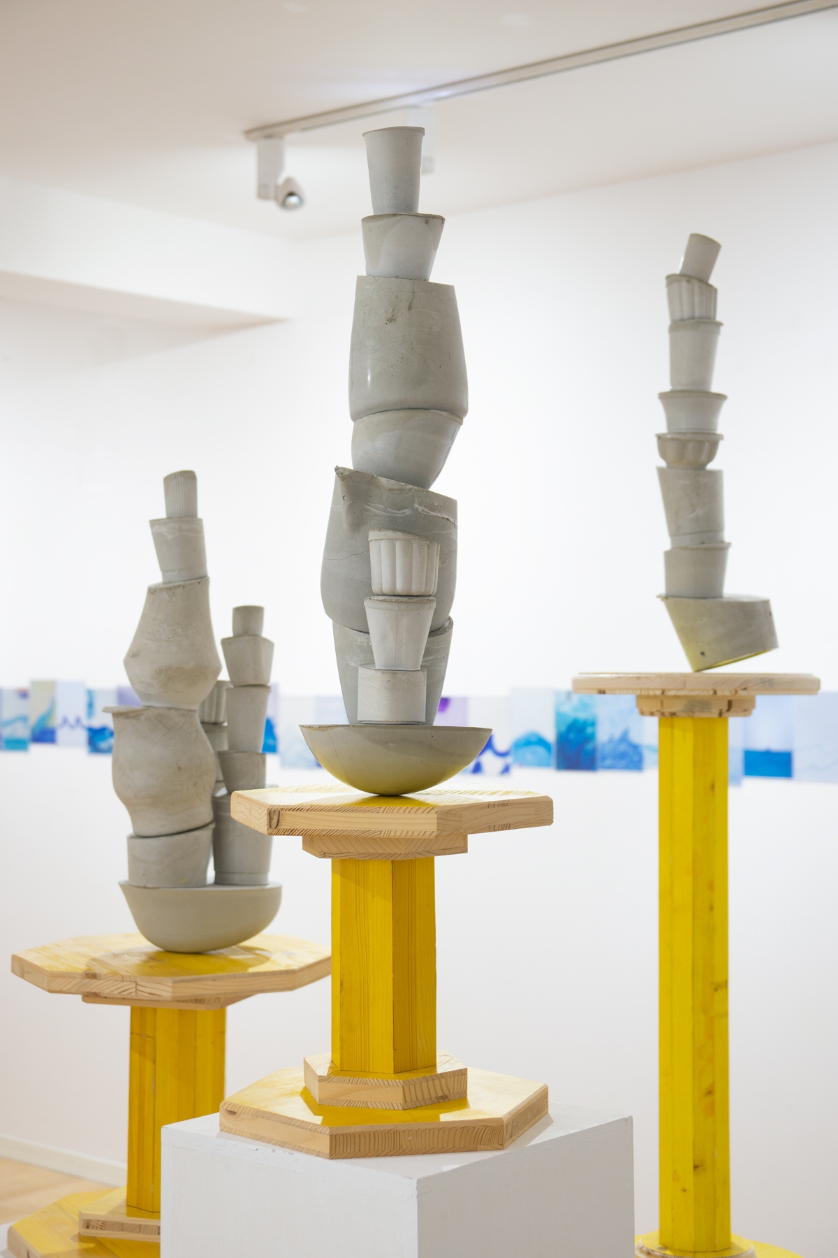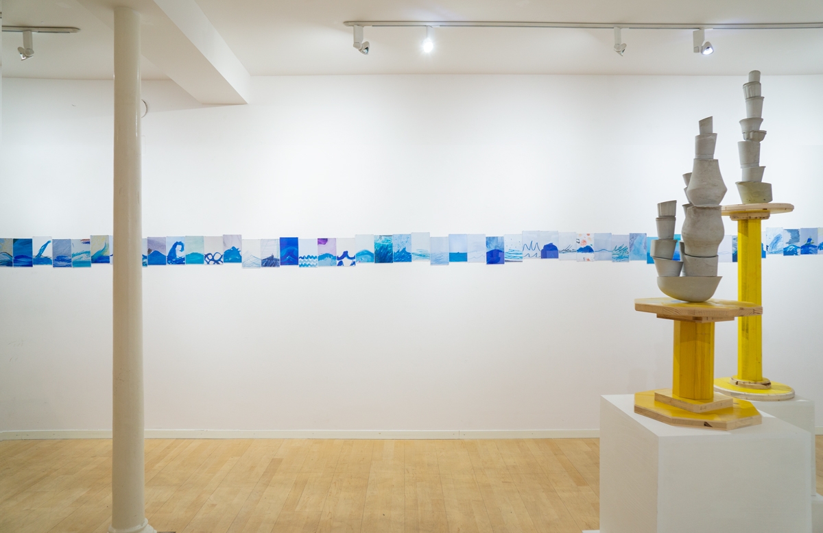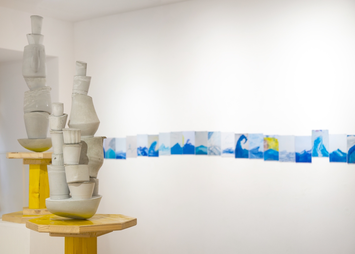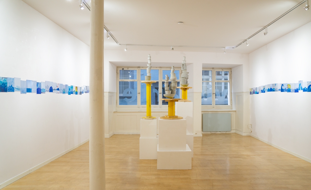 In the exhibition of the same name (Zürich, 2022), it was exhibited alongside a group of cornupcopias, where the rippling horizontality of the waves was a direct threat to the precarious vertical stackings of concrete elements. A conflict between flow and accumulation which will ring as both generational as ecological.