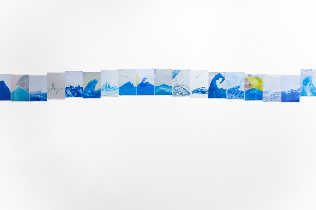 The photographs that make up Children Making Waves as a singular work (not a series), are “portraits” capturing instances of waves while sifting through hundreds of drawings by schoolchildren. Collectively, they bear something of the school photograph, that old exercise in conformity (here seen in the convention of the sideway wave, moving from left to right), while each individual mien reveals a personality of one’s own.